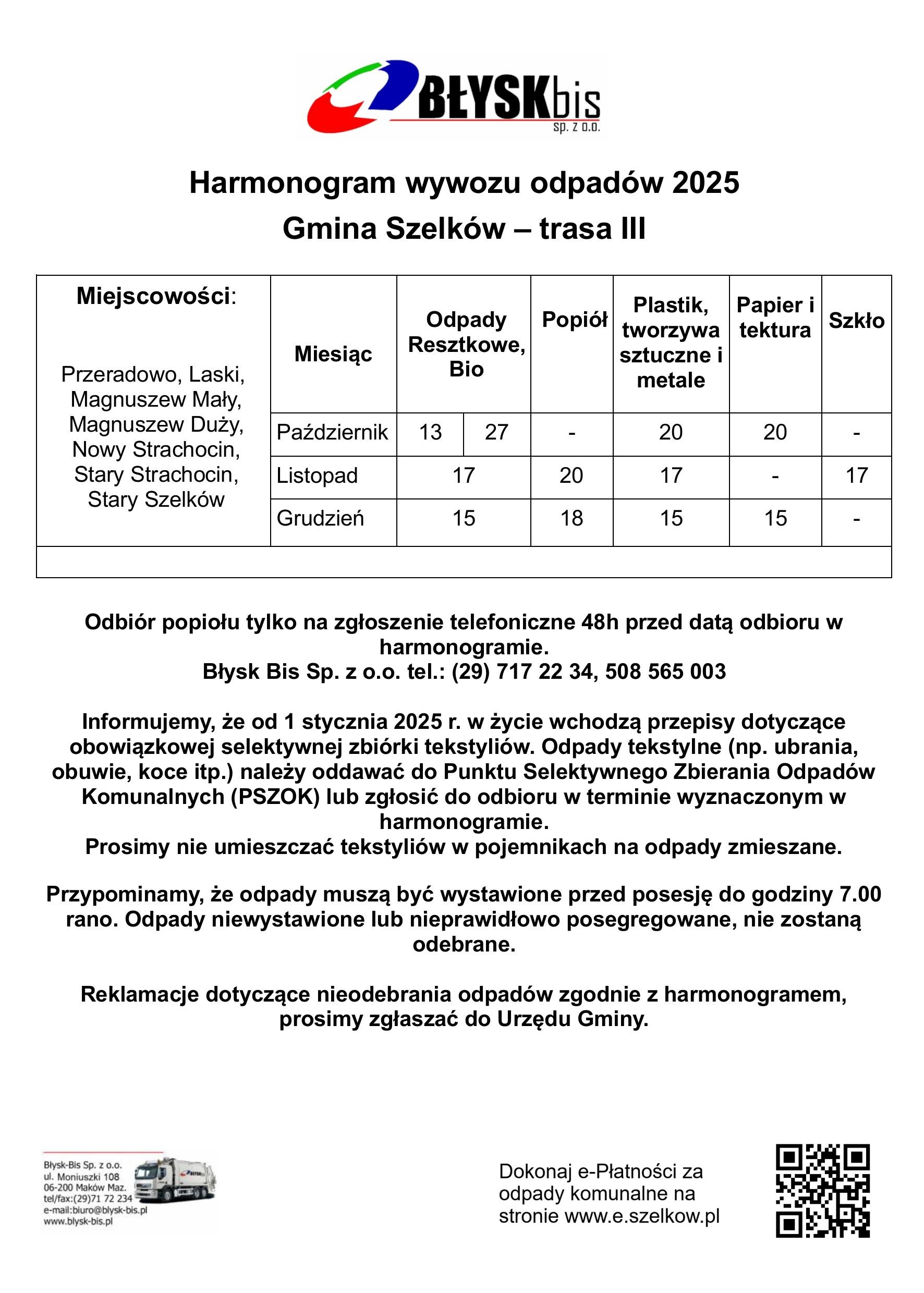 Roczna analiza gospodarki odpadami komunalnymi na terenie Gminy Szelków za 2024 r.